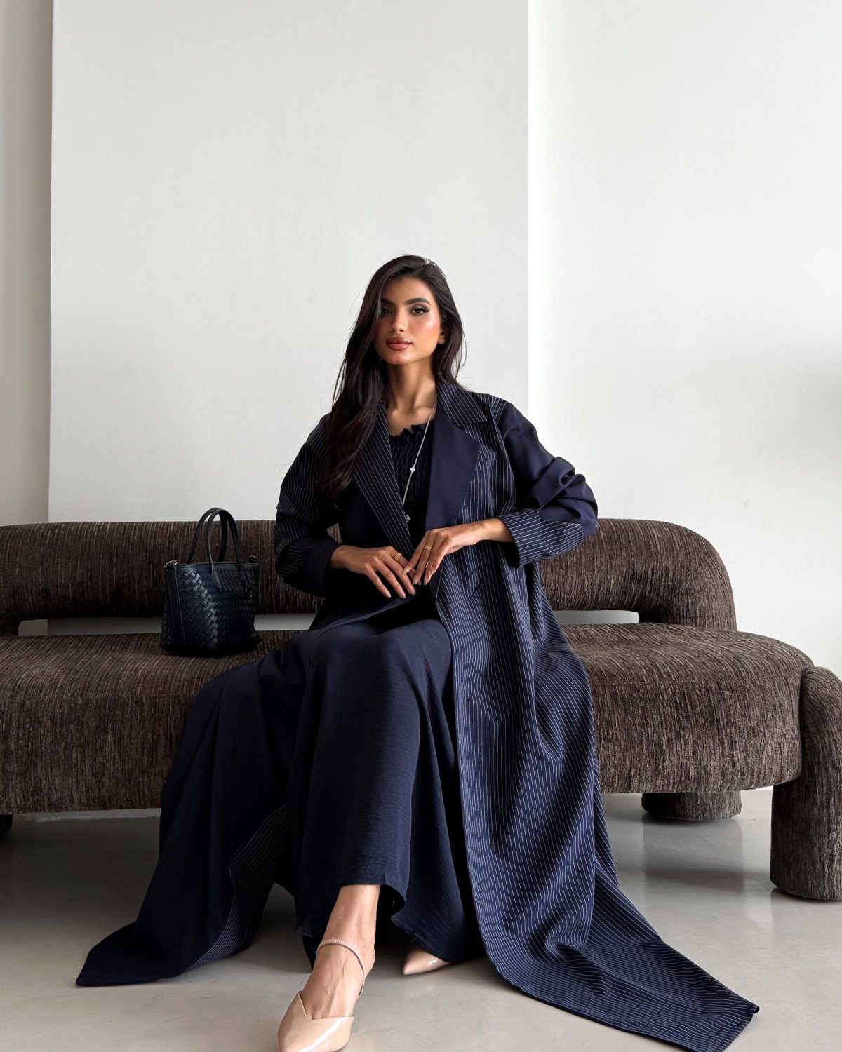 • اللون الكحلي يمنح مرونة كبيرة في التنسيق مع مختلف الإكسسوارات والأحذية، لتظهري بإطلالة متجددة مع كل مرة ترتدينها.